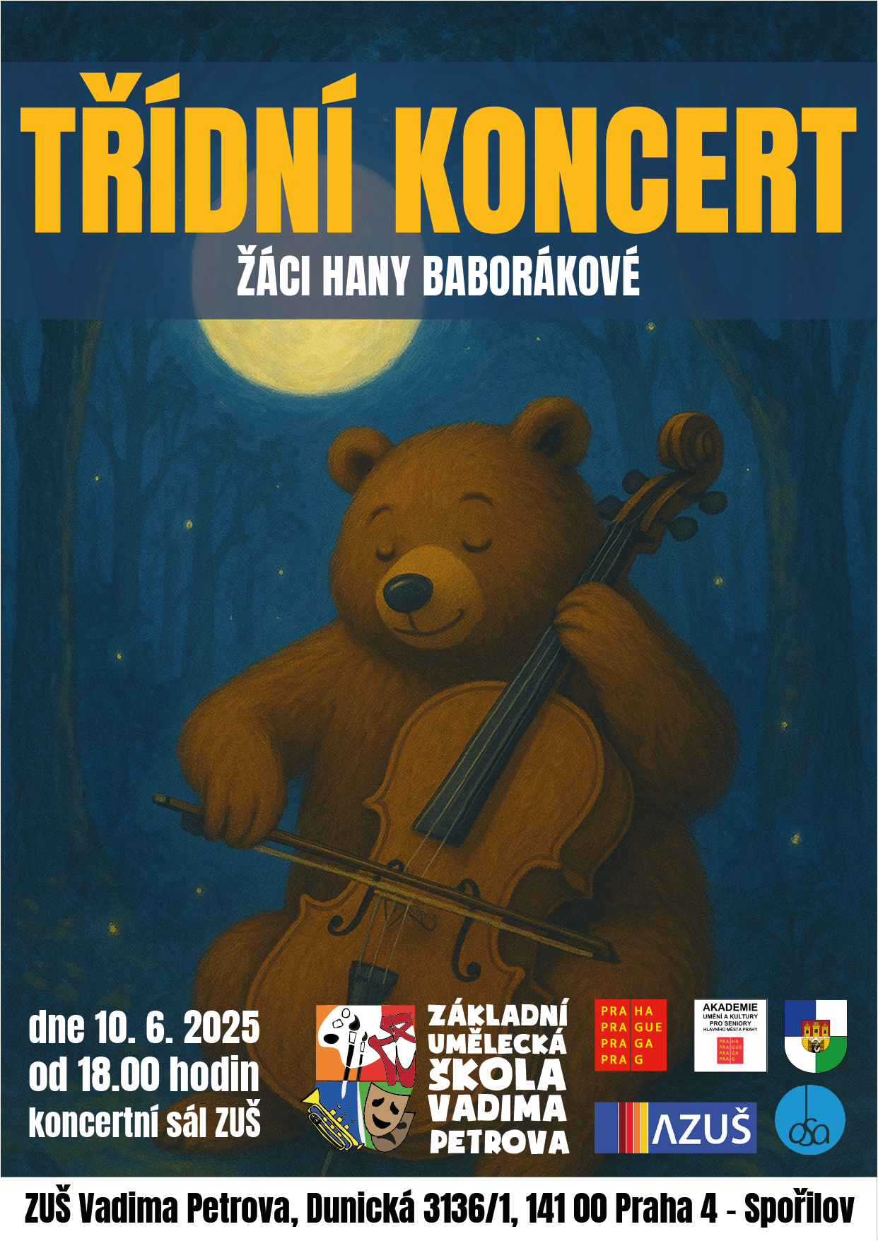 - 10. 6. 2025 - Třídní koncert žáků Hany Baborákové od 18.00 hodin;