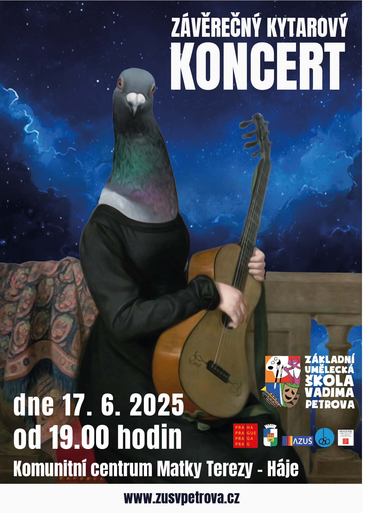 - 17. 6. 2025 - Závěrečný kytarový koncert v Komunitním centrum Matky Terezy - Háje od 19.00 hodin;
