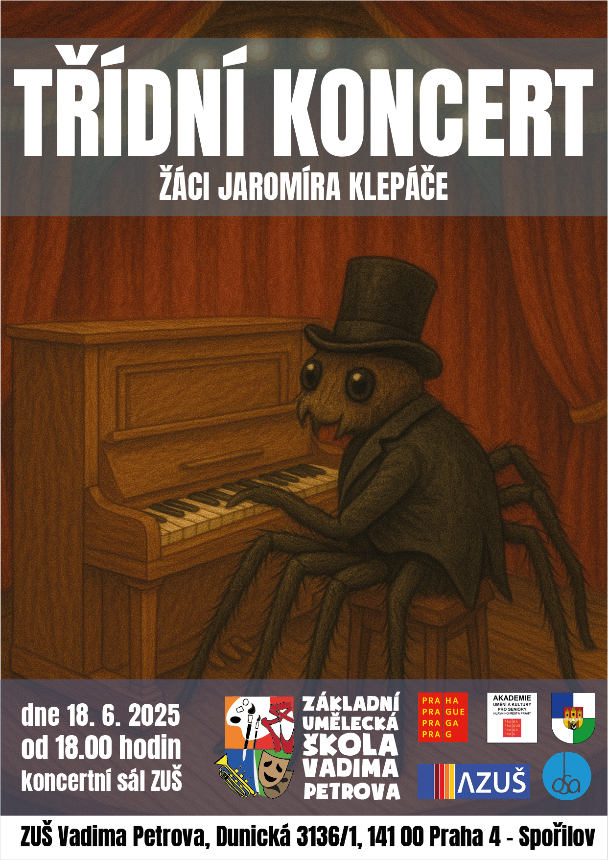 - 18. 6. 2025 - Třídní koncert žáků Jaromíra Klepáče od 18.00 hodin;