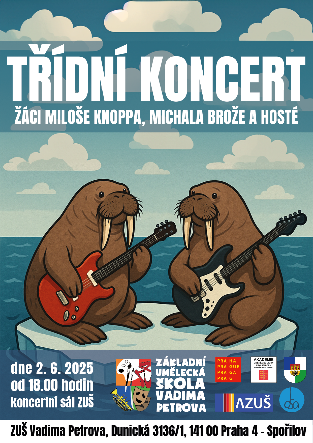 - 2. 6. 2025 - Třídní koncert žáků Miloše Knoppa a Michala Brože od 18.00 hodin;