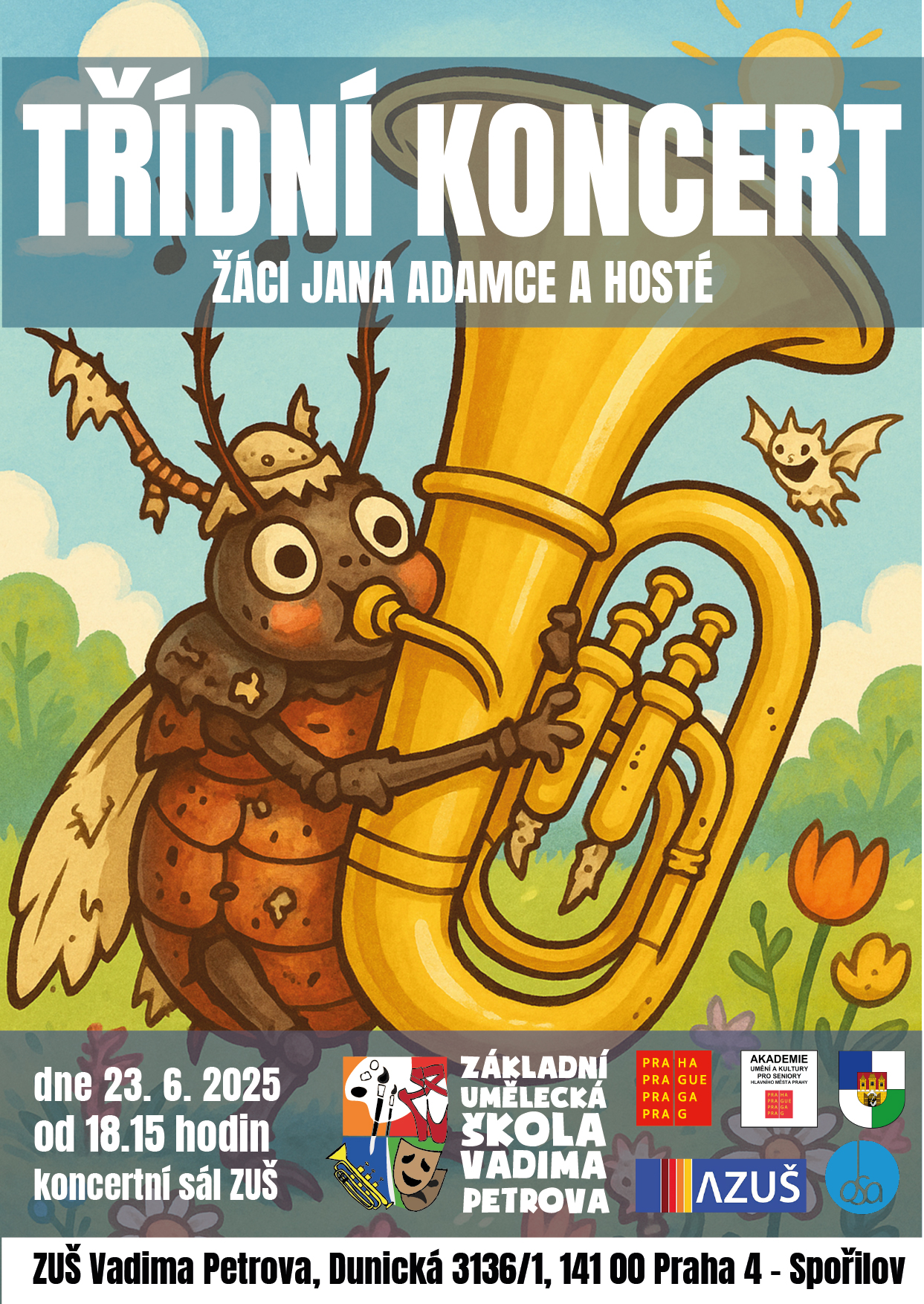 - 23. 6. 2025 - Změna! Třídní koncert žáků Jana Adamce v 18.15 hodin;