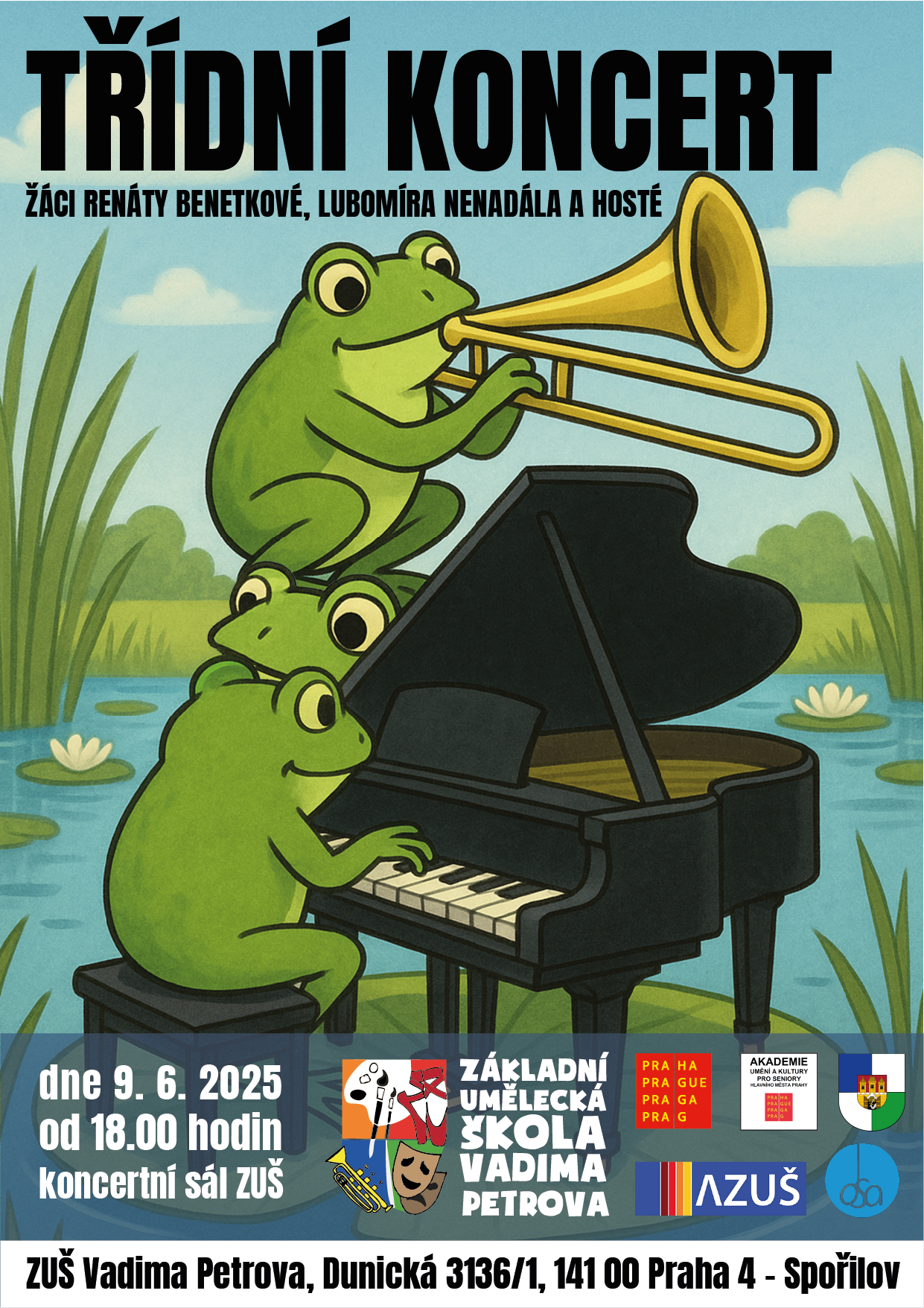 - 9. 6. 2025 - Třídní koncert žáků Renáty Benetkové a Lubomíra Nenadála od 18.00 hodin;