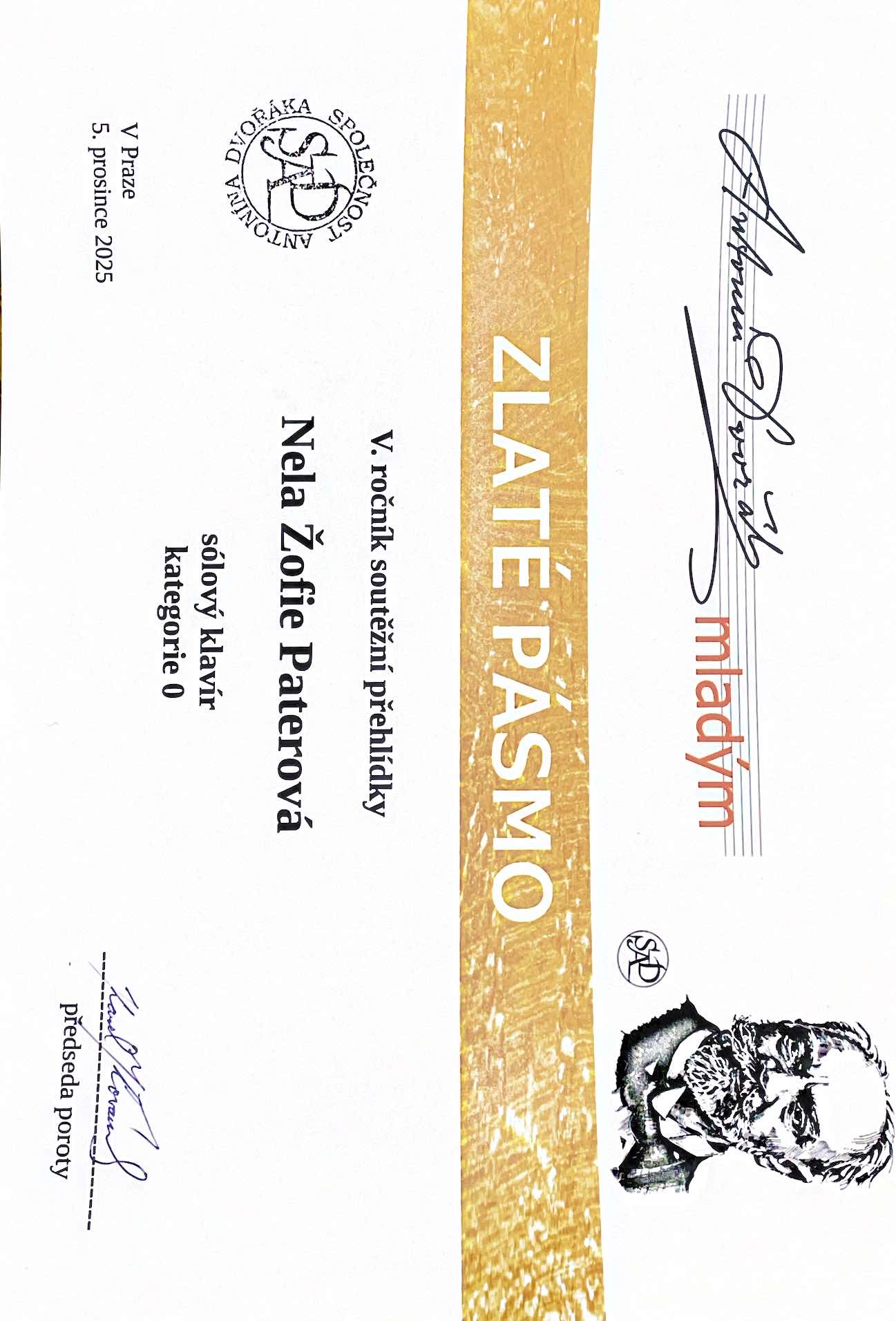 - Nela Žofie Paterová - zlaté pásmo