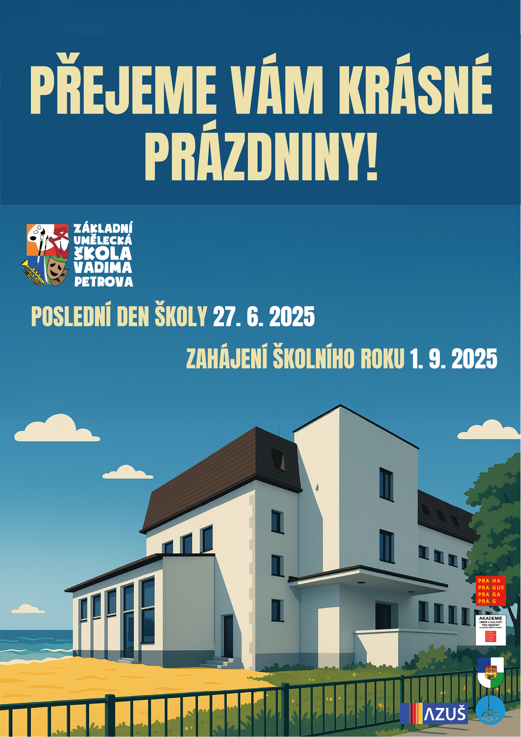 Poslední den školního roku je 27. 6. 2025. Zahájení školního roku 2025/2026 proběhne 1. 9. 2025.